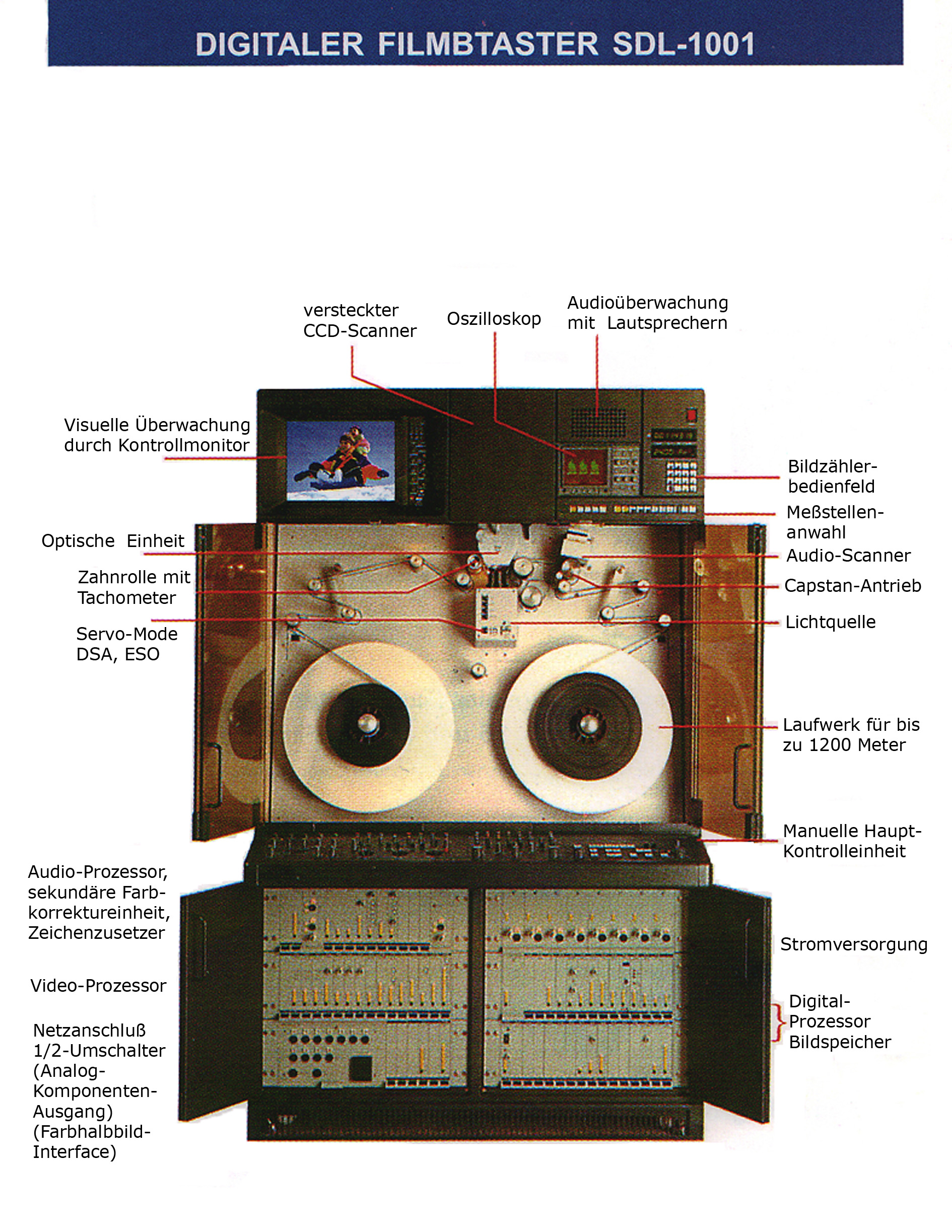 Der SDL - 1001 arbeitet nicht mehr mit Röhren, sondern mit langlebigen CCD-Zeilsensoren. Durch diese treten Einbrenn- und Nachziehprobleme nicht mehr auf. Jedes Filmbild wird nur einmal zeilensequentiell und ohne Ablenkung abgetastet. Somit erfolgt die Vollbildwiedergabe flimmerfrei und die vertikale Auflösung bleibt absolut konstant.